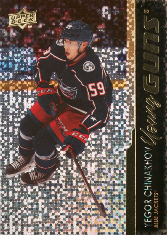 This card is 1 of 9 Yegor Chinakhov's card variations in the 2021 Upper Deck set being tracked by Sports Card Investor, including Young Guns Base, Young Guns - Clear Cut, Young Guns - Clear Cut Exclusives, Young Guns - French, and Young Guns - Jumbo.