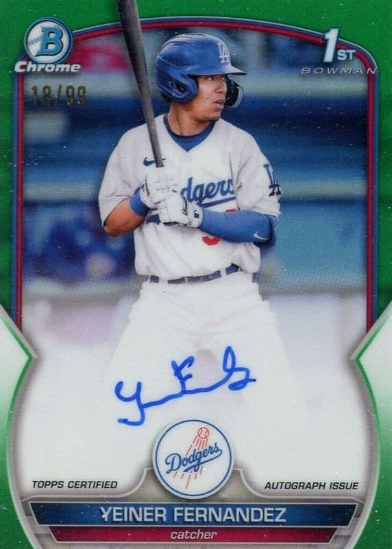 2023 Bowman Chrome 1st Green Refractor Auto Yeiner Fernandez /99 SP RC DODGERS
