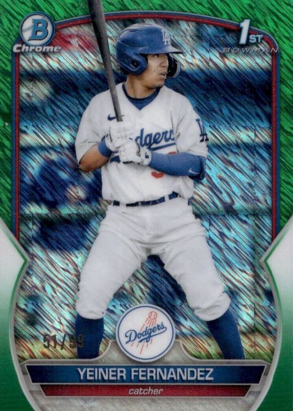 Auctions Ending Soon for Yeiner Fernandez 2023 Bowman #BCP-138 Chrome Prospects - Green Shimmer Refractor /99 (1st) RAW