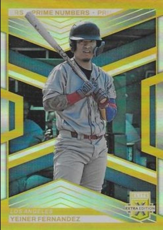 The Yeiner Fernandez 2023 Elite Extra Edition #115 Prime Numbers Gold /24 card is 1 of 39 Yeiner Fernandez's card variations in the 2023 Elite Extra Edition set being tracked by Sports Card Investor, including Base, Pink, Signatures, Status Green /499, and Signatures die-cut /399.