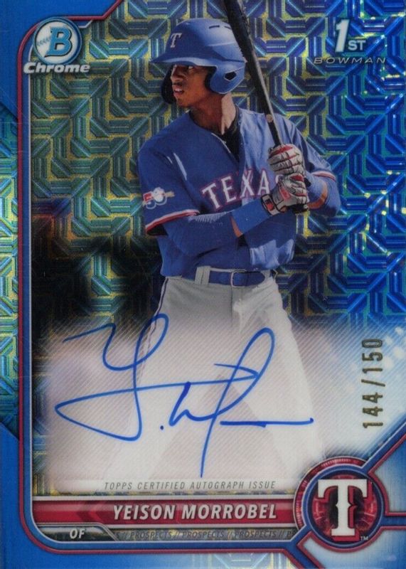 Best Prices Available For Sale of Yeison Morrobel 2022 Bowman Chrome #CPA-YML Prospect Auto - Choice Refractor /150 (1st)