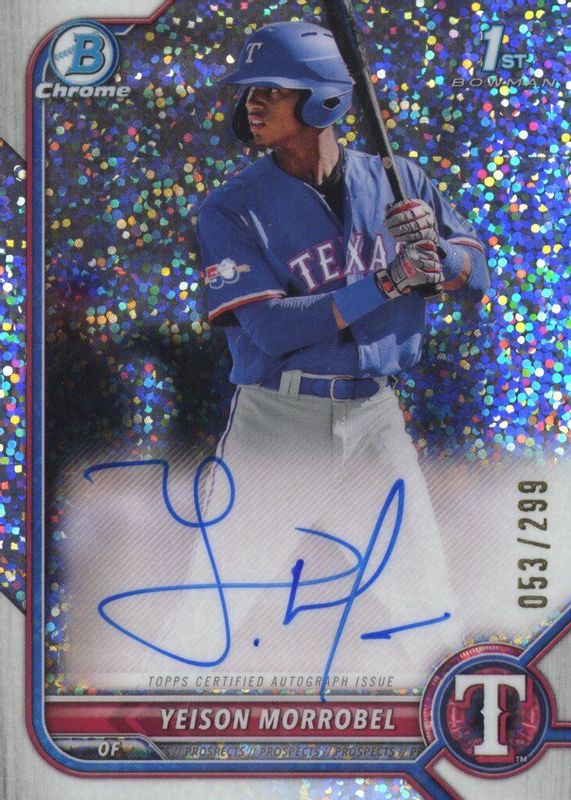Yeison Morrobel 2022 1st Bowman Chrome AUTO Speckle REFRACTOR /299 RC J4 Rangers