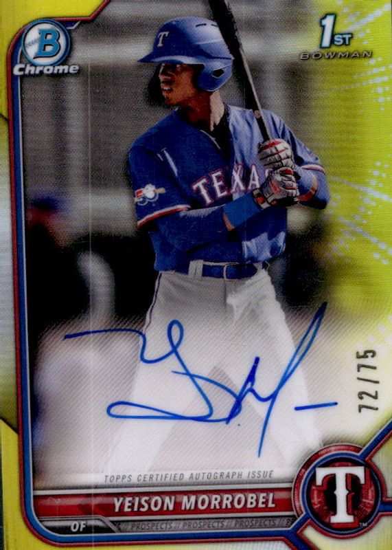 2022 Bowman Chrome Yeison Morrobel Prospect Auto Yellow Refractor 1st #17/75
