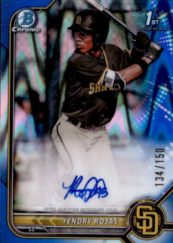 2022 Bowman Chrome Yendry Rojas Blue Raywave Refractor 1st Auto #134/150 Padres