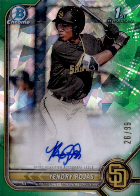 Yendry Rojas 2022 Bowman Chrome #CPA-YR Prospect Auto - Green Atomic Refractor /99 (1st) RAW Price Guide