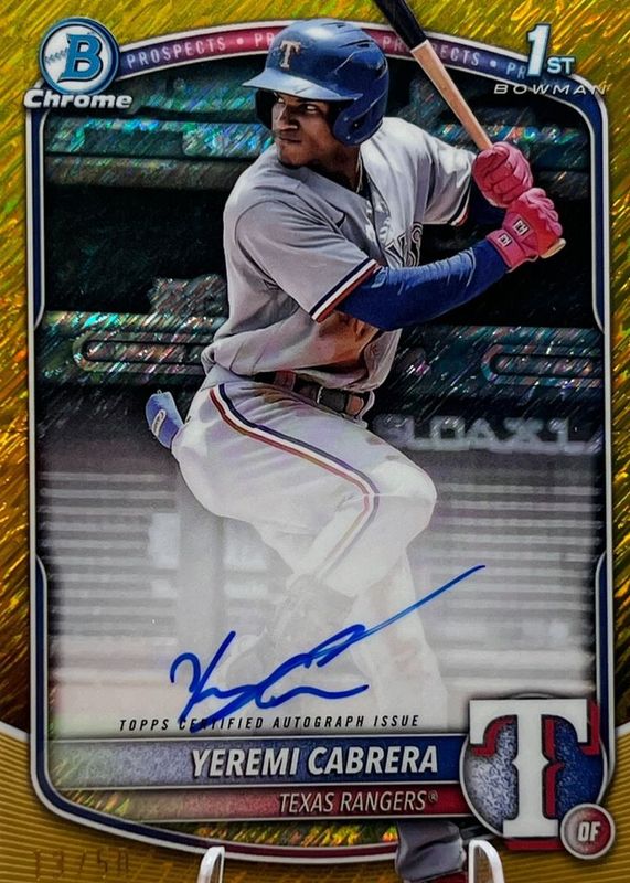 2025 Bowman Chrome Yeremi Cabrera 1st Auto Gold Shimmer /50 #CPA-YC Rangers RC