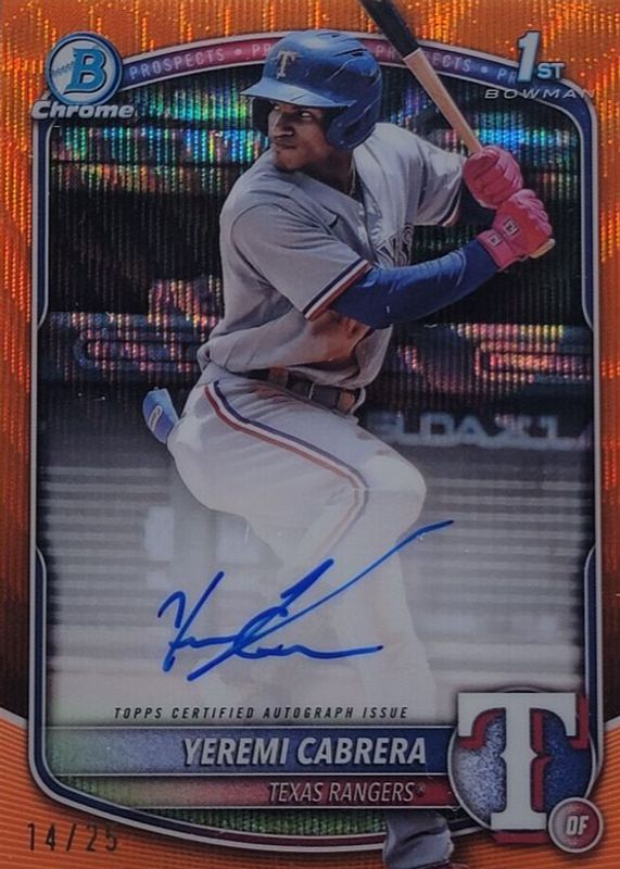 Best Prices Available For Sale of Yeremi Cabrera 2025 Bowman #CPA-YC Chrome Prospect Auto - Orange Wave Refractor /25 (1st)