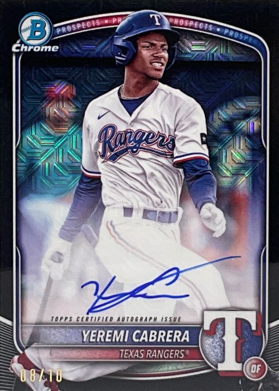 Best Prices Available For Sale of Yeremi Cabrera 2025 Bowman Mega Box #BMA-YCA Chrome Prospect Auto - Black Refractor /10