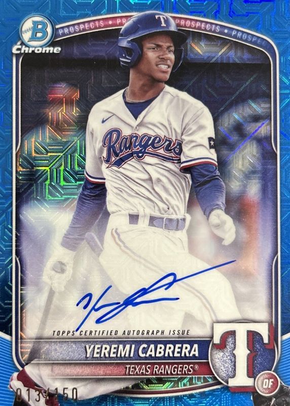 2025 Bowman Chrome Mega Yeremi Cabrera AUTO /150 Blue MOJO Refractor Rangers