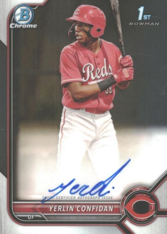 The Yerlin Confidan 2022 Bowman Chrome #CPA-YC Prospect Auto (1st) card in Raw condition has not changed in price in the last 30 days and was last sold for $0.99 .