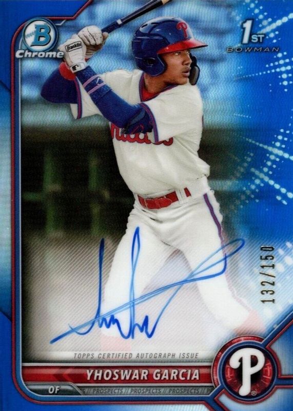 Yhoswar Garcia 2022 1ST BOWMAN CHROME BLUE REFRACTOR AUTO /150 PHILLIES