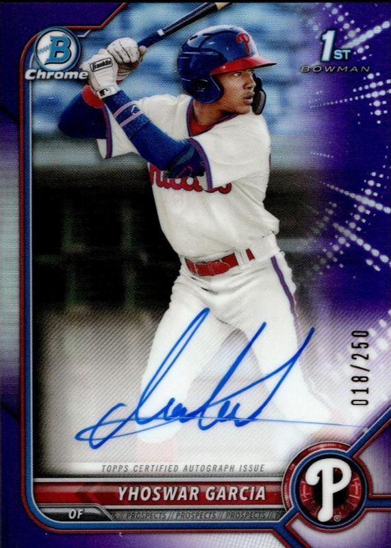 Yhoswar Garcia 2022 Bowman Chrome 1st Auto Purple Refractor /250 Phillies