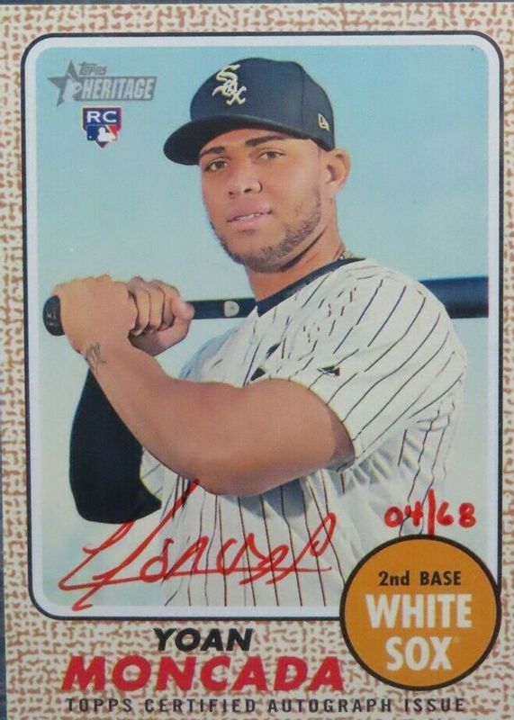 This card is 1 of 2 Yoan Moncada's card variations in the 2017 Topps Heritage set being tracked by Sports Card Investor, including Real One Autographs (Red Jersey).