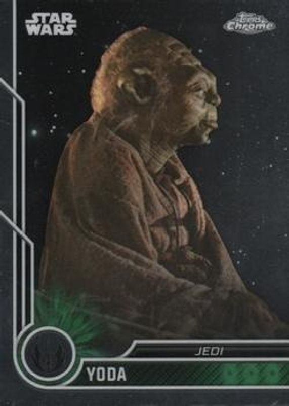 The Yoda 2023 Topps Chrome Star Wars #51 Base card is 1 of 17 Yoda's card variations in the 2023 Topps Chrome Star Wars set being tracked by Sports Card Investor, including Black Wave, Purple Wave, Refractor, Aqua /199, and Blue /150.