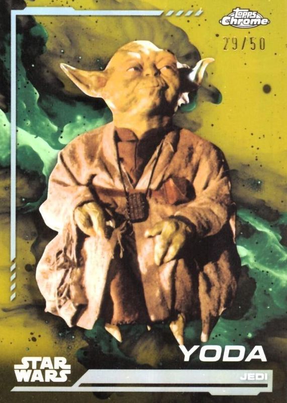 The Yoda 2024 Topps Chrome Star Wars #140 Gold Refractor /50 card in Raw condition has not changed in price in the last 30 days and was last sold for $21.50 .