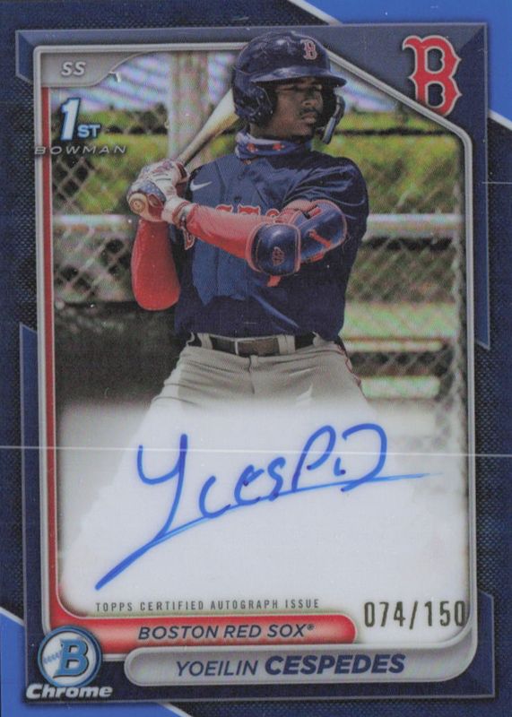 Best Prices Available For Sale of Yoeilin Cespedes 2024 Bowman #CPA-YCE Chrome Prospect Auto - Blue Refractor /150 (1st)
