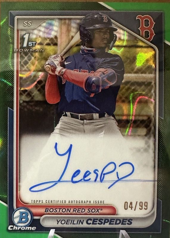 2024 Bowman Chrome 1st Green Auto Refractor 28/99 Yoeilin Cespedes Red Sox