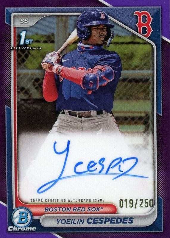 2024 BOWMAN CHROME PURPLE /250 1ST PROSPECT AUTO YOEILIN CESPEDES RED SOX