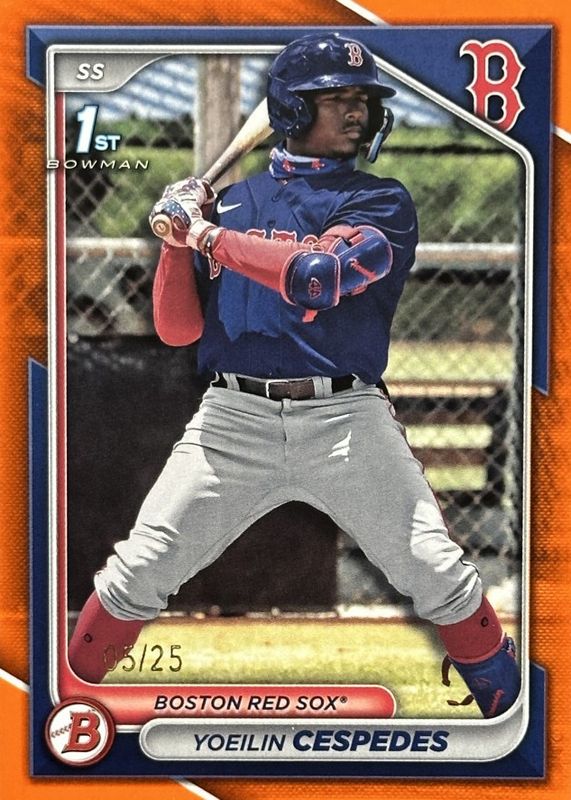 Yoeilin Cespedes 2024 Bowman 1st Orange Paper Parallel RC /25. Red Sox