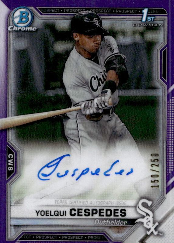 Yoelqui Cespedes 2021 Bowman Chrome 1st Auto Purple Refractor /250 White Sox