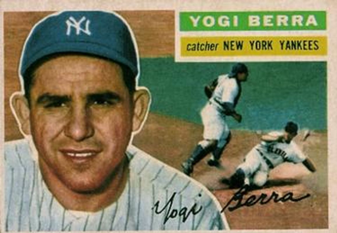 The Yogi Berra 1956 Topps #110a Base card is 1 of 4 Yogi Berra's card variations in the 1956 Topps set being tracked by Sports Card Investor, including Base, Gray Back, and White Back.