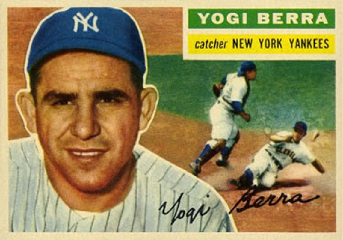 The Yogi Berra 1956 Topps #110b Base card is 1 of 4 Yogi Berra's card variations in the 1956 Topps set being tracked by Sports Card Investor, including Base, Gray Back, and White Back.