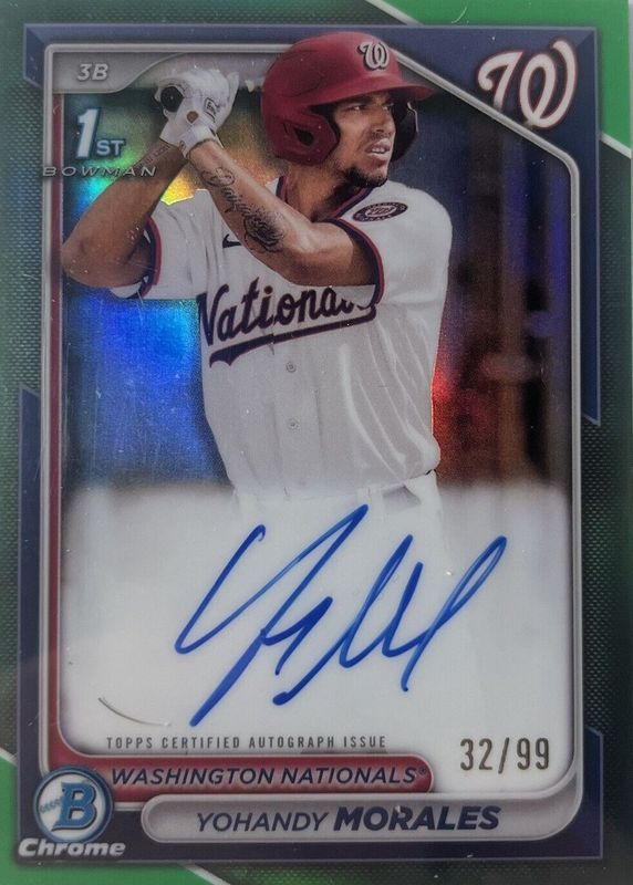 Yohandy Morales 2024 Bowman 1st Bowman Chrome Green Refractor Auto /99 Nationals