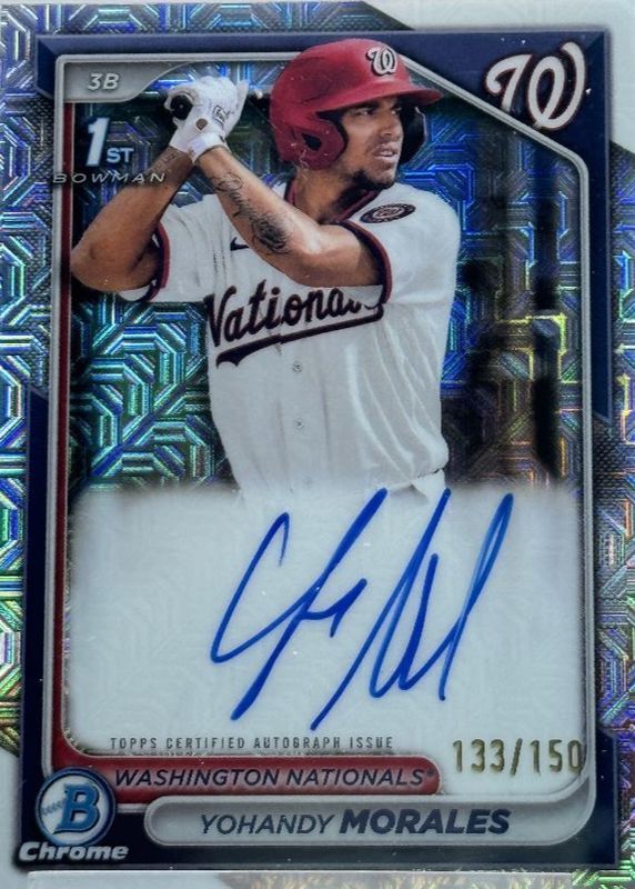 Best Prices Available For Sale of Yohandy Morales 2024 Bowman #CPA-YM Chrome Prospect Auto - HTA Choice Refractor /150 (1st)