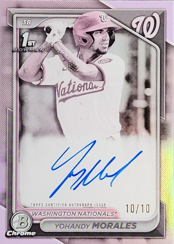 Best Prices Available For Sale of Yohandy Morales 2024 Bowman #CPA-YM Chrome Prospect Auto - Pearl Refractor /10 (1st)