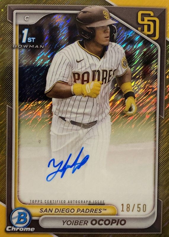 Yoiber Ocopio 2024 Bowman Chrome 1st Auto Gold Shimmer Refractor /50 Padres