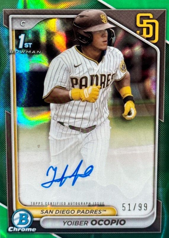 2024 Bowman Chrome Yoiber Ocopio 1st Green Lava Refractor Auto #91/99 Padres