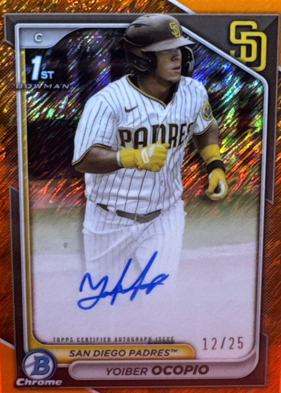 Best Prices Available For Sale of Yoiber Ocopio 2024 Bowman Chrome #CPA-YO Prospect Auto - Orange Shimmer Refractor /25 (1st)