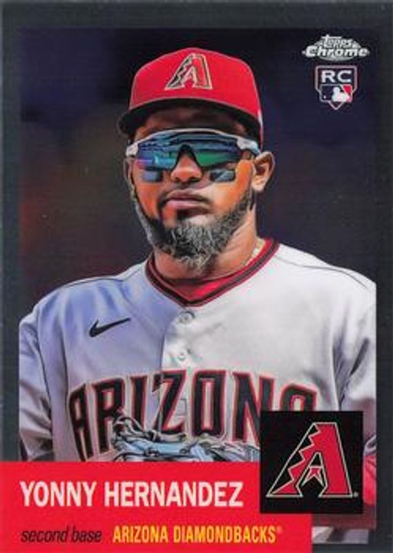 The Yonny Hernandez 2022 Topps Chrome Platinum Anniversary #303 Base Rookie card is 1 of 34 Yonny Hernandez's card variations in the 2022 Topps Chrome Platinum Anniversary set being tracked by Sports Card Investor, including Black & White Mini Diamond Refractor, Blue Prism Refractor, Gold Prism Refractor, Prism Refractor, and Red Prism Refractor.
