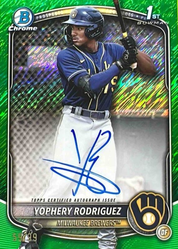 2025 Bowman Chrome Yophery Rodriguez 1st Green Shimmer Auto /99 Brewers