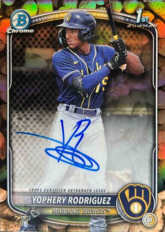 Yophery Rodriguez 2025 Bowman #CPA-YR Chrome Prospect Auto - Peanuts Refractor /5 (1st) RAW Price Guide