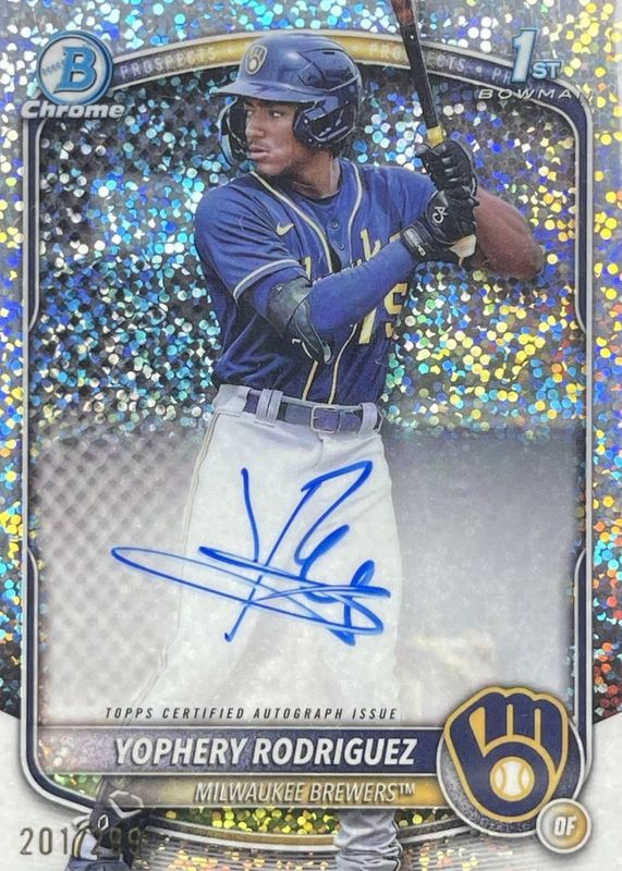 2025 Bowman Yophery Rodriguez Chrome Auto Speckle Refractor 1st Prospect #/299