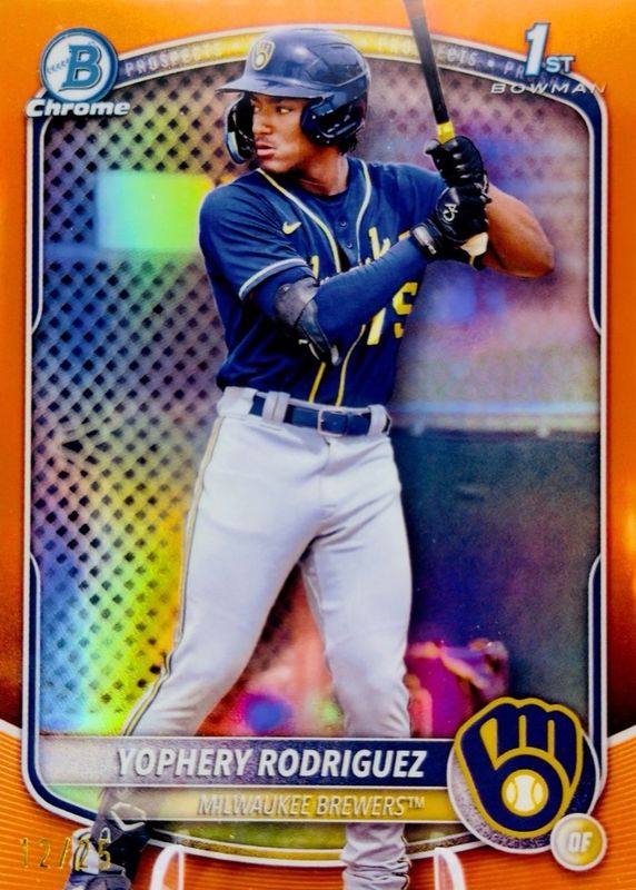 2025 Bowman Yophery Rodriguez Chrome Orange Refractor 1st #6/25 Brewers