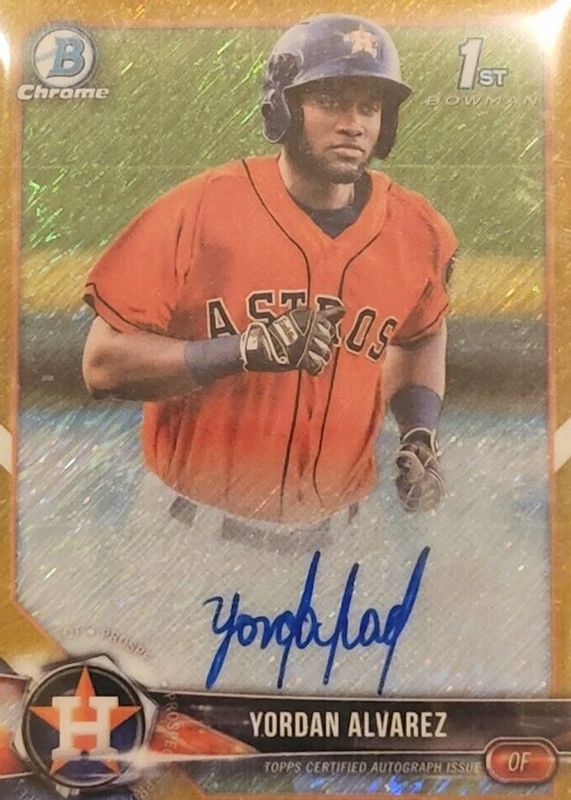 Best Prices Available For Sale of Yordan Alvarez 2018 Bowman Chrome #CPA-YA Prospect Auto - Gold Shimmer Refractor /50 (1st)