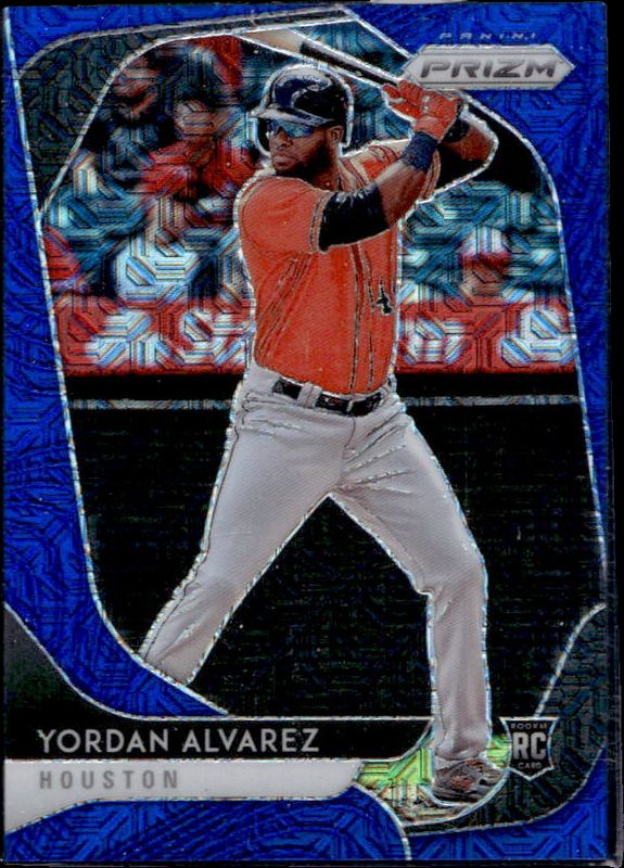 The Yordan Alvarez 2020 Prizm #181 Blue Mojo /175 Rookie card is 1 of 97 Yordan Alvarez's card variations in the 2020 Prizm set being tracked by Sports Card Investor, including Base, Blue, Carolina Blue, Cosmic Haze, and Green.
