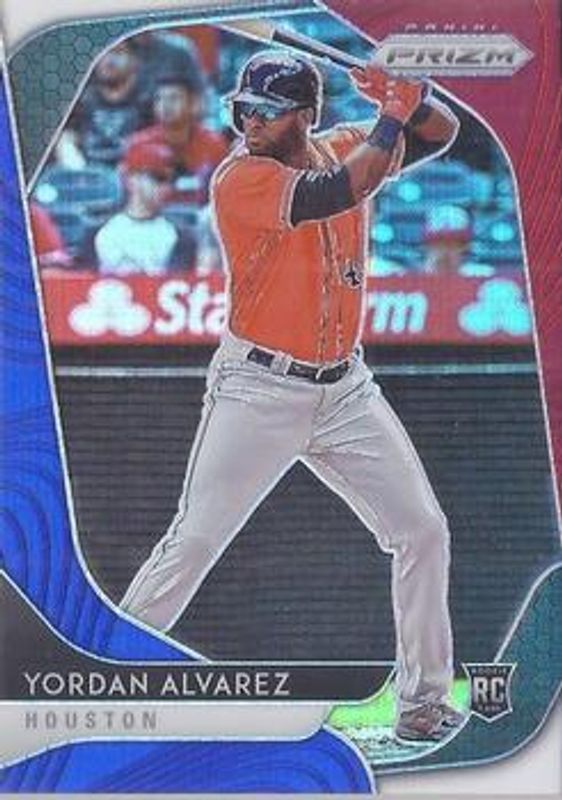 The Yordan Alvarez 2020 Prizm #181 Red White Blue Rookie card is 1 of 97 Yordan Alvarez's card variations in the 2020 Prizm set being tracked by Sports Card Investor, including Base, Blue, Carolina Blue, Cosmic Haze, and Green.