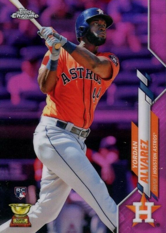 The Yordan Alvarez 2020 Topps Chrome #200 Pink Refractor Rookie card in Raw condition has moved up $5.00 (+505%) in the last 30 days and was last sold for $5.99 .