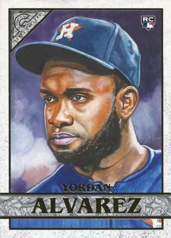 The Yordan Alvarez 2020 Topps Gallery #OBT-YA Oversized Box Toppers Rookie card is 1 of 35 Yordan Alvarez's card variations in the 2020 Topps Gallery set being tracked by Sports Card Investor, including Base, Artist's Proofs, Rainbow Foil, Wood, and Private Issue /250.