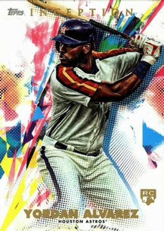 The Yordan Alvarez 2020 Topps Inception #25 Base Rookie card is 1 of 39 Yordan Alvarez's card variations in the 2020 Topps Inception set being tracked by Sports Card Investor, including Green, Purple /150, Magenta /99, Red /99, and Orange /50.