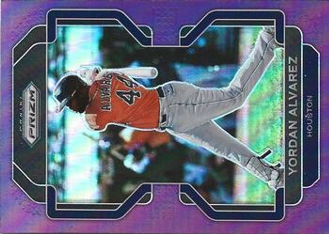 The Yordan Alvarez 2022 Prizm #66 Purple card is 1 of 82 Yordan Alvarez's card variations in the 2022 Prizm set being tracked by Sports Card Investor, including Base, Blue, Blue Velocity, Carolina Blue, and Cosmic Haze.