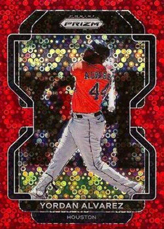 The Yordan Alvarez 2022 Prizm #66 Red Donut Circles /99 card is 1 of 82 Yordan Alvarez's card variations in the 2022 Prizm set being tracked by Sports Card Investor, including Base, Blue, Blue Velocity, Carolina Blue, and Cosmic Haze.
