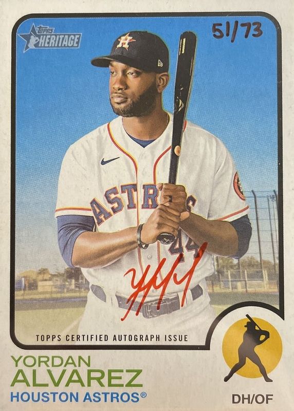 This card is 1 of 2 Yordan Alvarez's card variations in the 2022 Topps Heritage set being tracked by Sports Card Investor, including Real One Autographs.