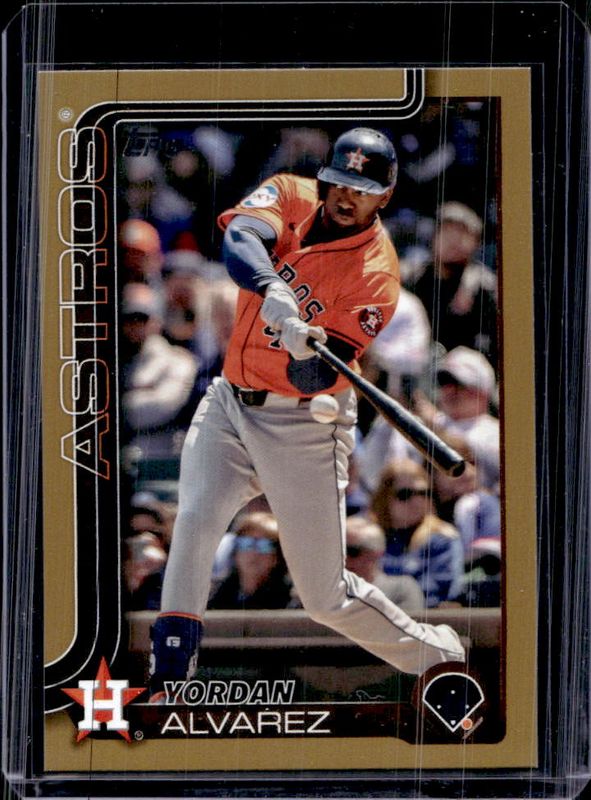 The Yordan Alvarez 2025 Topps #244 Gold /2025 card is 1 of 257 Yordan Alvarez's card variations in the 2025 Topps set being tracked by Sports Card Investor, including Base, Aqua Holo Foil, Diamante Foil, Holo Foil, and Pink Diamante Foil.