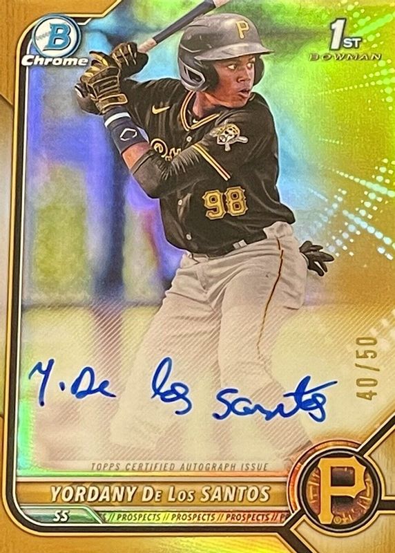YORDANY DE LOS SANTOS 2022 1st Bowman Chrome Auto True Gold Refractor /50 Pirate
