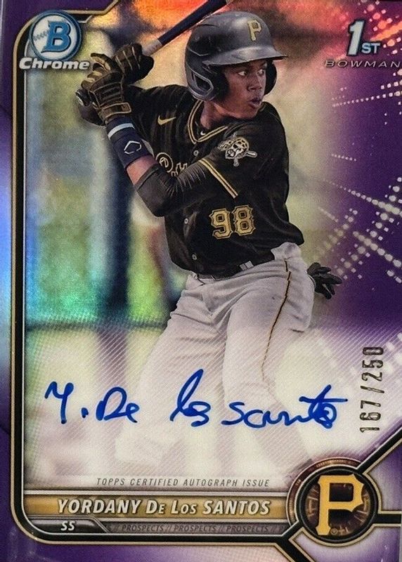 Yordany De Los Santos 2022 Bowman Chrome 1st Purple Refractor Auto /250 PIRATES