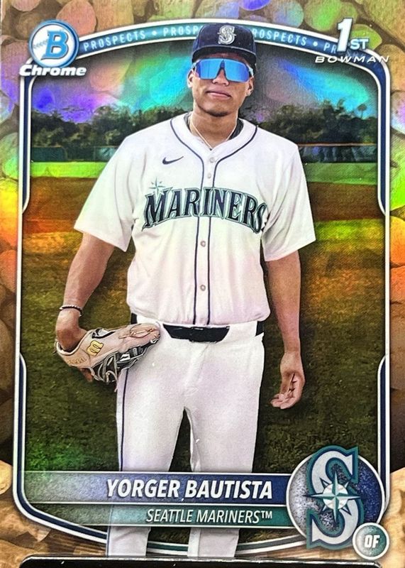 This card is 1 of 91 Yorger Bautista's card variations in the 2025 Bowman Chrome set being tracked by Sports Card Investor, including International Refractor Variation, Prospect Auto (1st), Prospect Auto - Black & White Shimmer Refractor (1st), Prospects (1st), and Prospects - Mini-Diamond Refractor (1st).